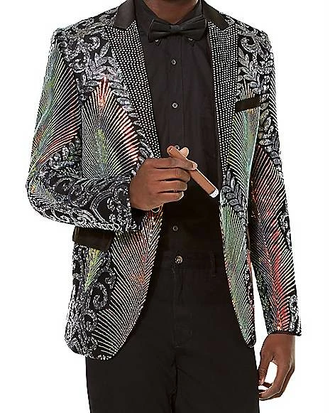 Give ’em the old razzle dazzle in this Adult ’20s Multicolored Jacket! Featuring captivating sequins arranged in an ornate pattern true to roaring ’20s fashion, this jacket sparkles like the sun. Complete your ’20s costume with this stunning jacket!