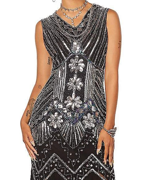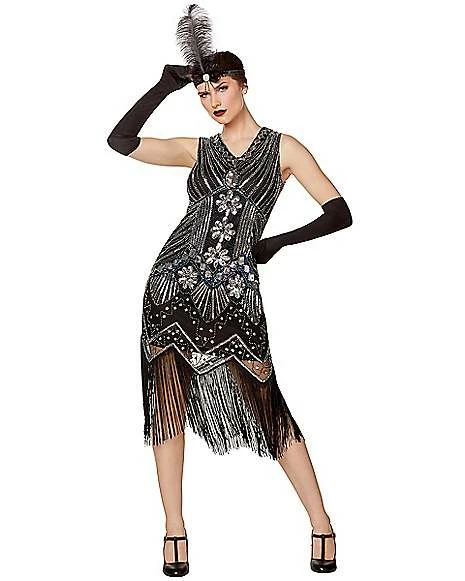Let’s have a ball, toots! Dance like it’s the prohibition era in our beautiful black adult beaded flapper dress. Dance to some jazz this Halloween and celebrate like it’s the ’20s! This beaded dress features fringe detail that will have you coined as best dressed!