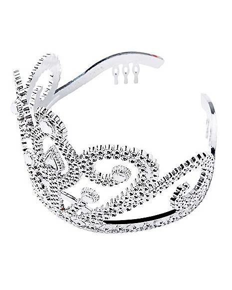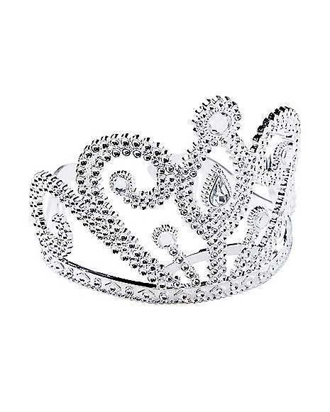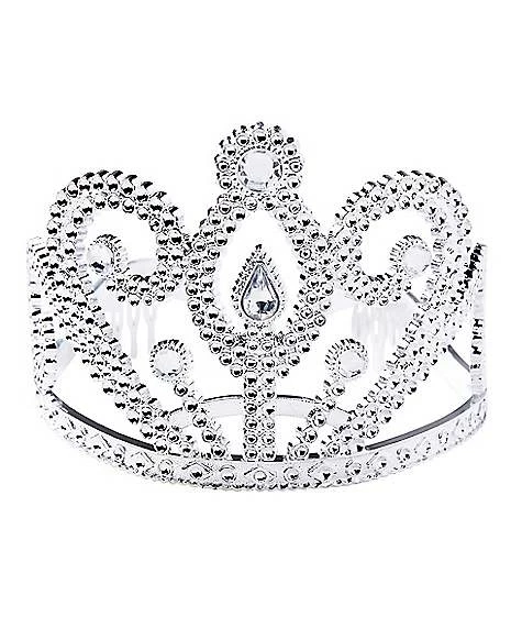 A true princess never forgets her crown! Pull off the ultimate princess look this Halloween with this elegant silver tiara. This tiara features a traditional design and is decorated with plastic jewelry all over for an unforgettable look. Have a royal Halloween this year when you add this tiara to your costume.